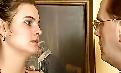 Nasty maid in magnificent lingerie set with pantyhose and garters fucks like nobody